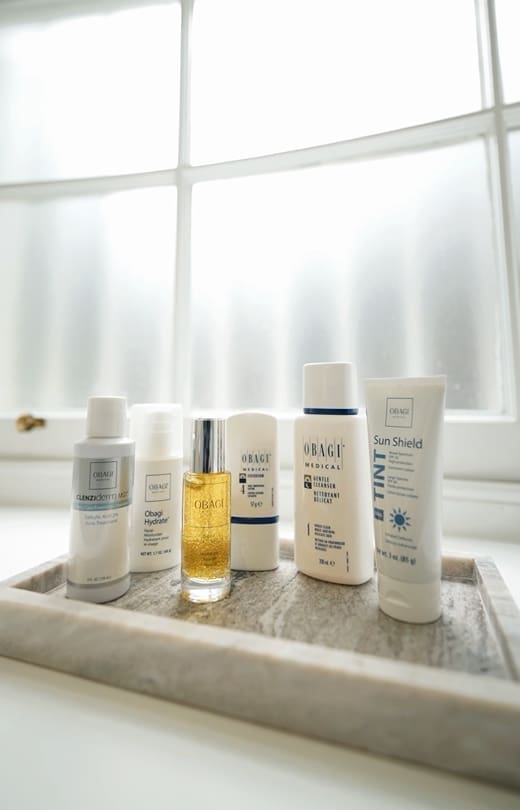 Results depend on skin type, concerns, and consistency of use. Many patients notice improvements in hydration, radiance, and texture within 2–4 weeks, while more complex concerns like hyperpigmentation or fine lines may take 8–12 weeks of consistent use. Combining products with professional treatments such as chemical peels, microneedling, or laser therapy can accelerate and enhance results.